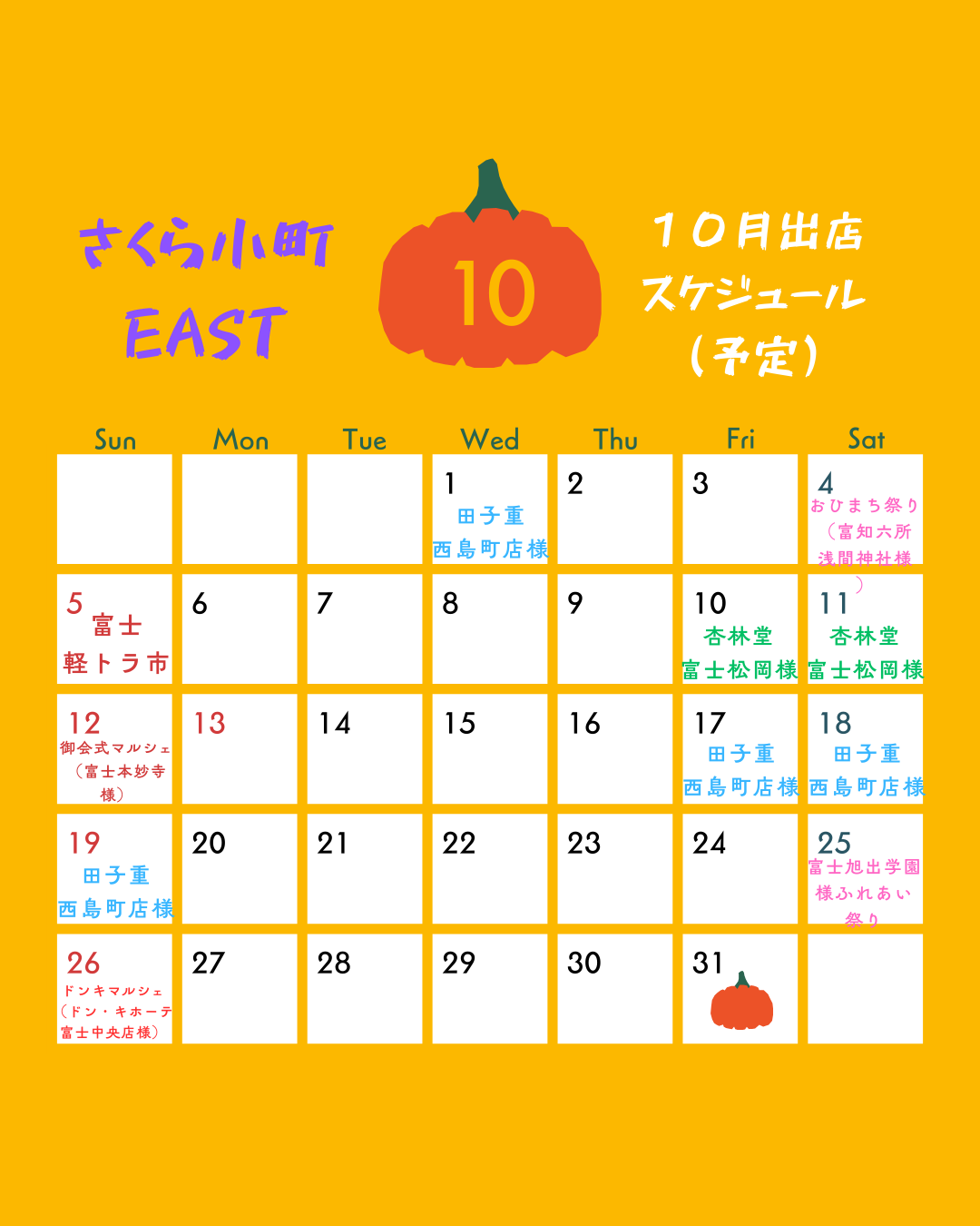 さくら小町出店スケジュール